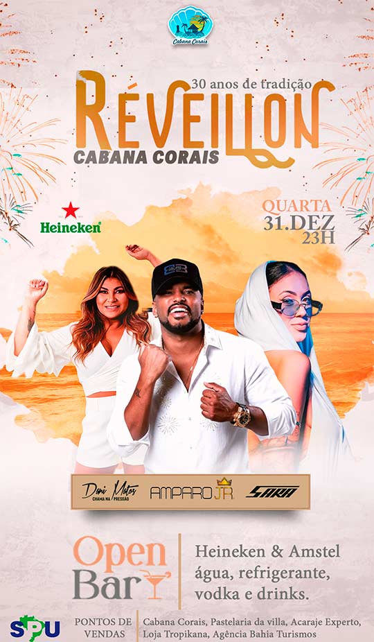 A Cabana Corais está localizada em um paradisíaco espaço a beira mar na Praia da Concha. Com 30 anos de tradição em eventos, oferece a alegria de uma festa em meio a energia da mais bela natureza! Com uma localização que possibilita ir a pé ao evento, evitando transtornos. Haverá queima de fogos, Dj´s e bandas, trazendo um repertório bem variado para garantir muita diversão! Evento Open bar.