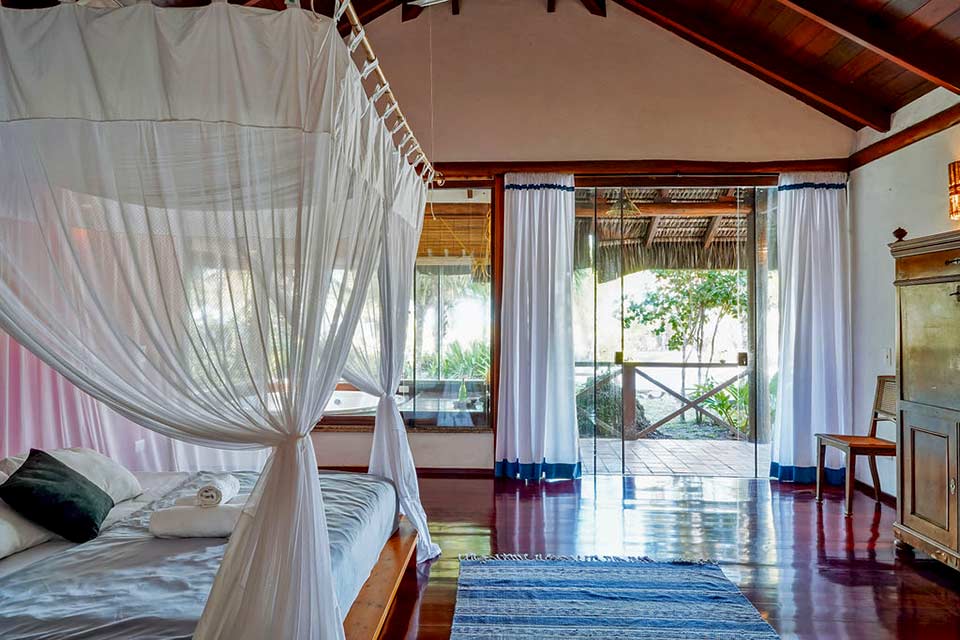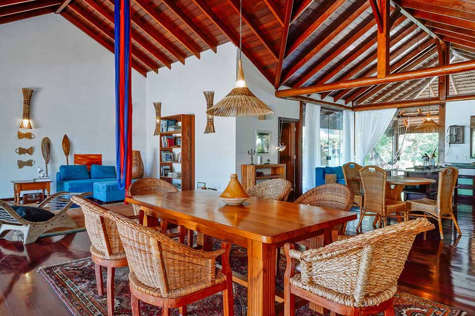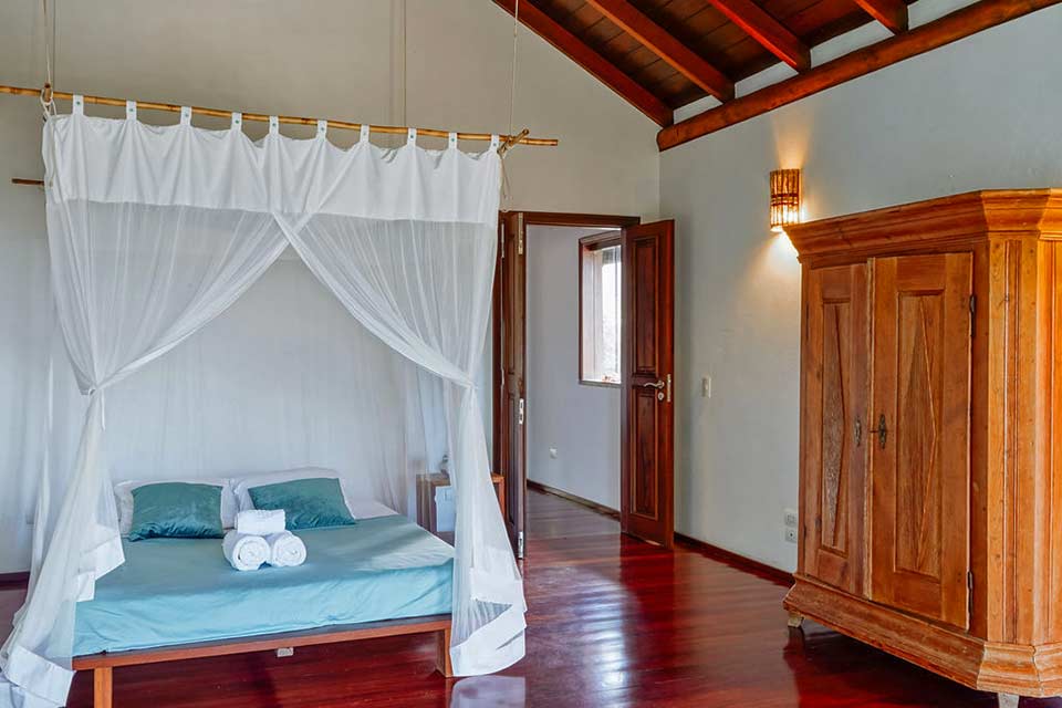 A Casa Sargi com área privativa de 5mil², 120m de frente mar, tem 4 suítes muito confortáveis, varandas vista mar e jardim, piscina, sauna, hidromassagem, banheira, cozinha externa gourmet, com roupas de cama 100% algodão alta qualidade, piso de madeira e muito espaço, está completíssima para seu conforto e bem estar. Acomoda até 8 adultos. Oferece serviço de camareira e cozinheira.