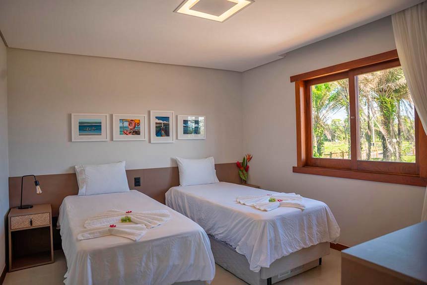 - Suíte 2 (andar superior): 2 camas de solteiro + 1 cama auxiliar.