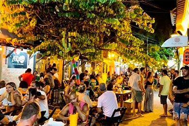 Certains bars et restaurants attirent l'attention par leur décoration exotique, souvent artisanale. Tableaux, couleurs, lumières donnent un reflet spécial à la nuit. Beaucoup proposent des petits concerts, avec le meilleur de la MPB (Musique Populaire Brésilienne). La musique électronique est également bien représentée. Soirées avec DJ's, grands concerts, avec des groupes connus, de la Black Music au reggae, enflamment et illuminent les nuits d'été.