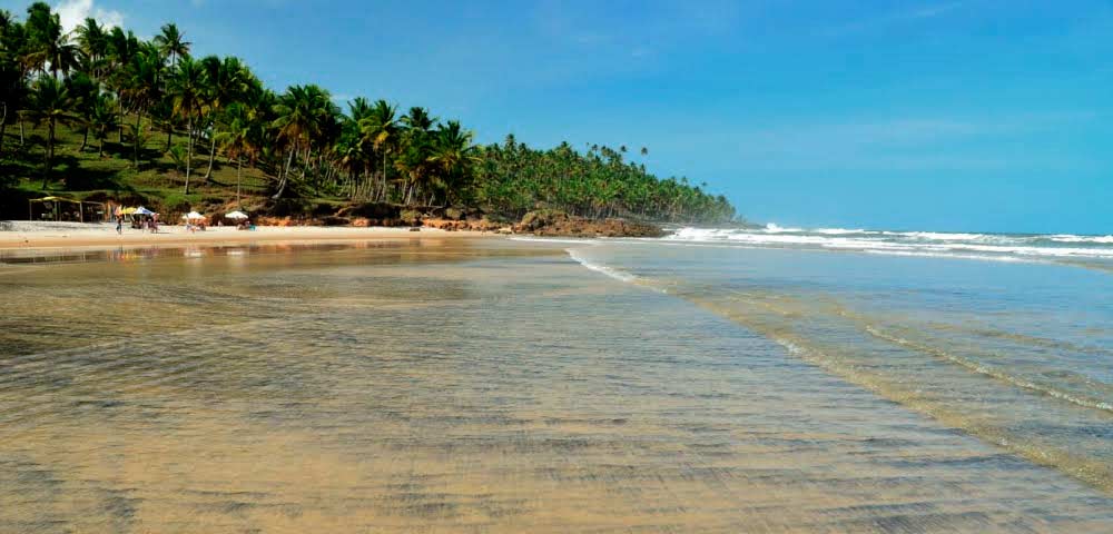 Une des belles plages d'Itacaré, à ne pas manquer ! Le Rio Jeribucaçu sort de la mangrove au milieu d'un décor paradisiaque.