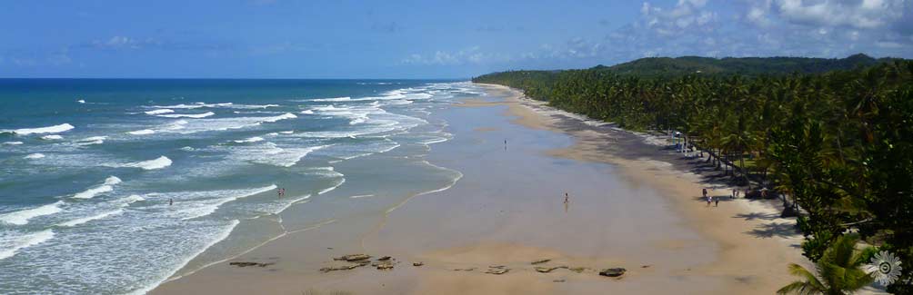 la plage se touve sur la route d´Ilhéus, à 15 km au sud du village. Le bus s´y arrête. Pour aller jusqu'à la plage il faut traverser une propriété privée.