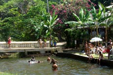 des collines jusqu'à une piscine d'eau douce tout en formant de petites cascades.